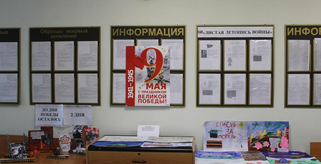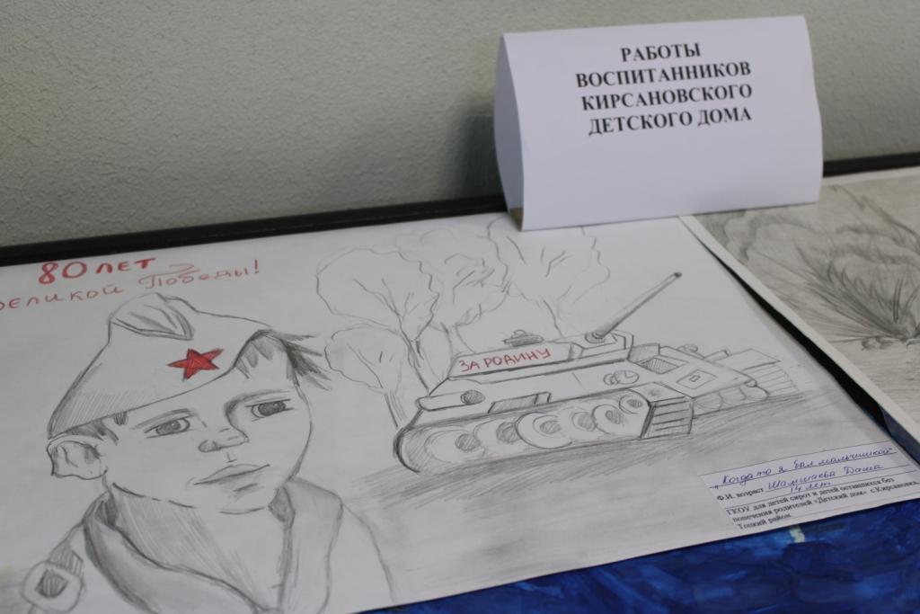 Накануне празднования 80-ой годовщины Победы в Великой Отечественной войне, в Тоцком районном суде проходит выставка рисунков и поделок, представленных воспитанниками Кирсановского детского дома, шефство над которыми мы ведем более 14 лет.