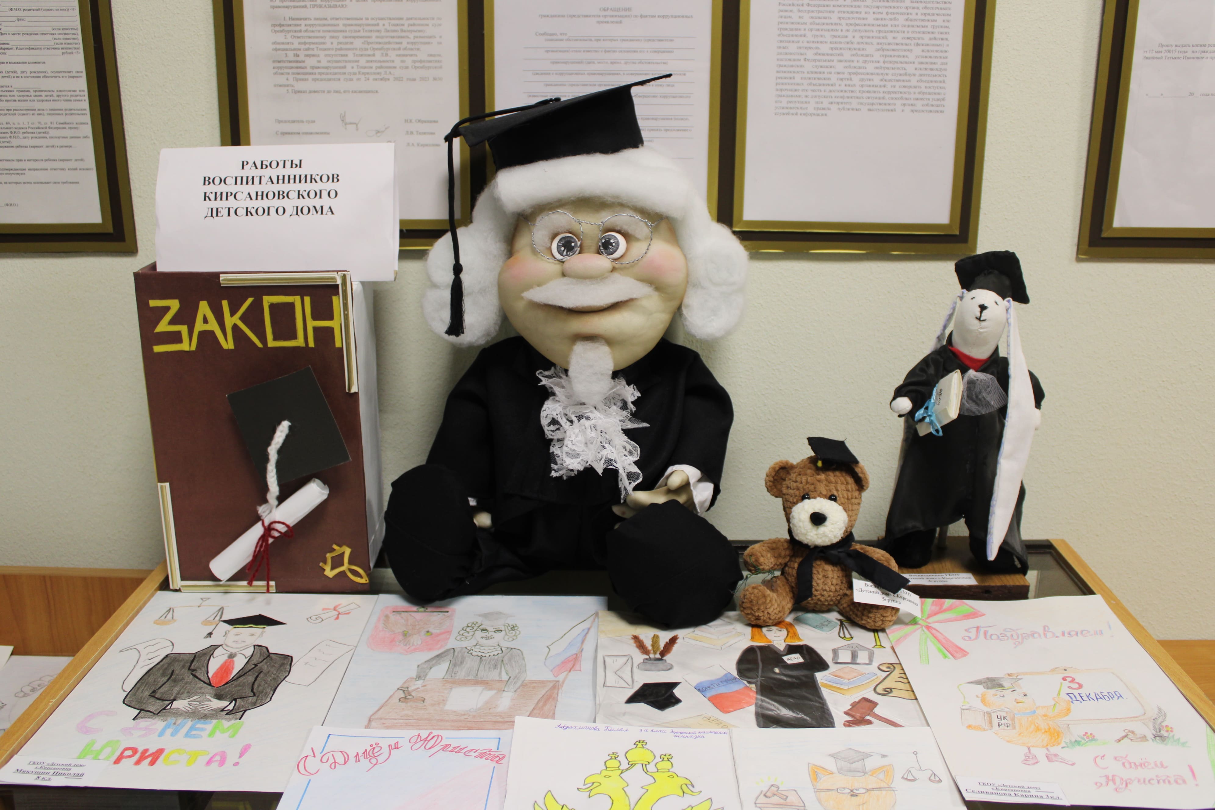 В преддверии Дня юриста в Тоцком районном суде проходит выставка рисунков и поделок, представленных воспитанниками Кирсановского детского дома, шефство над которыми мы ведем более 16 лет.